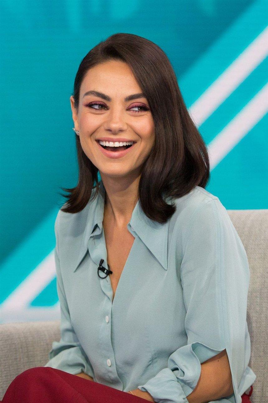 Варианты стрижки боб остаются самыми актуальными. Вдохновитесь примером Милы Кунис и сделайте незатейливую укладку на волосах до плеч. Слегка завейте пряди, чтобы они элегантно струились.